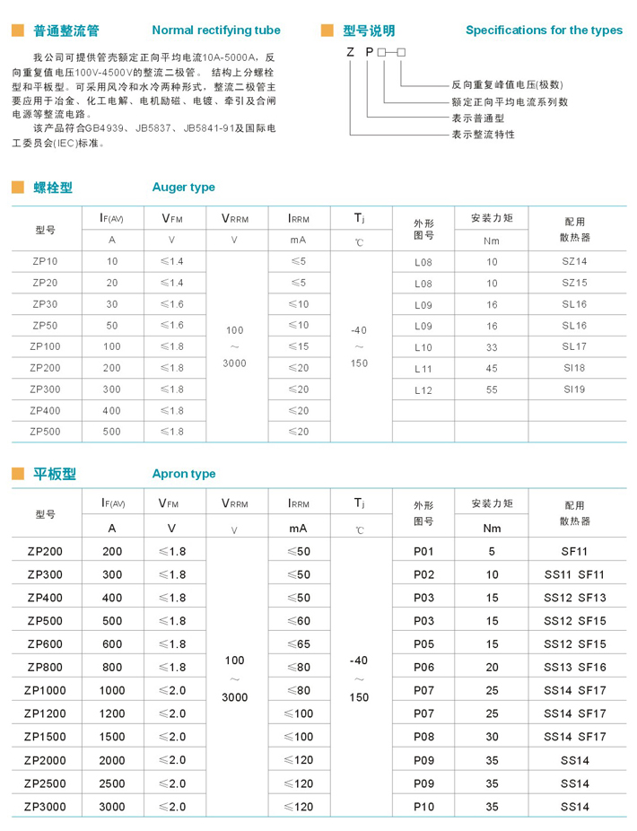 ZP螺旋式普通硅整流管系列